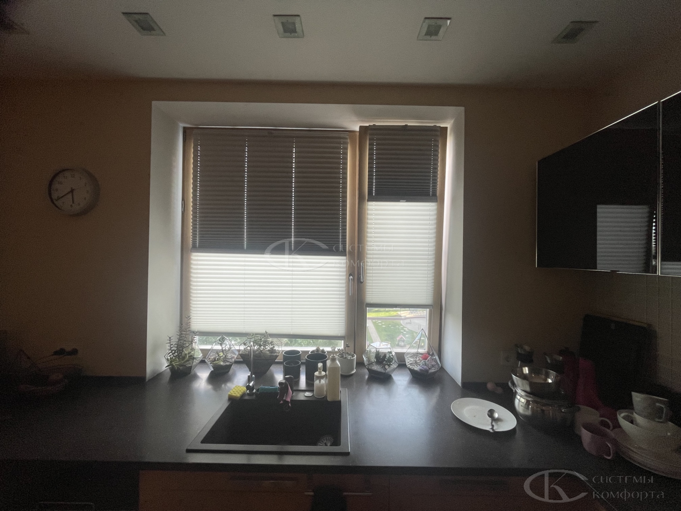 - Точный контроль света и приватность. Вы можете легко регулировать поток солнечного света, защищая мебель и интерьер от выгорания, и полностью закрыть окно от посторонних взглядов с наступлением ночи.