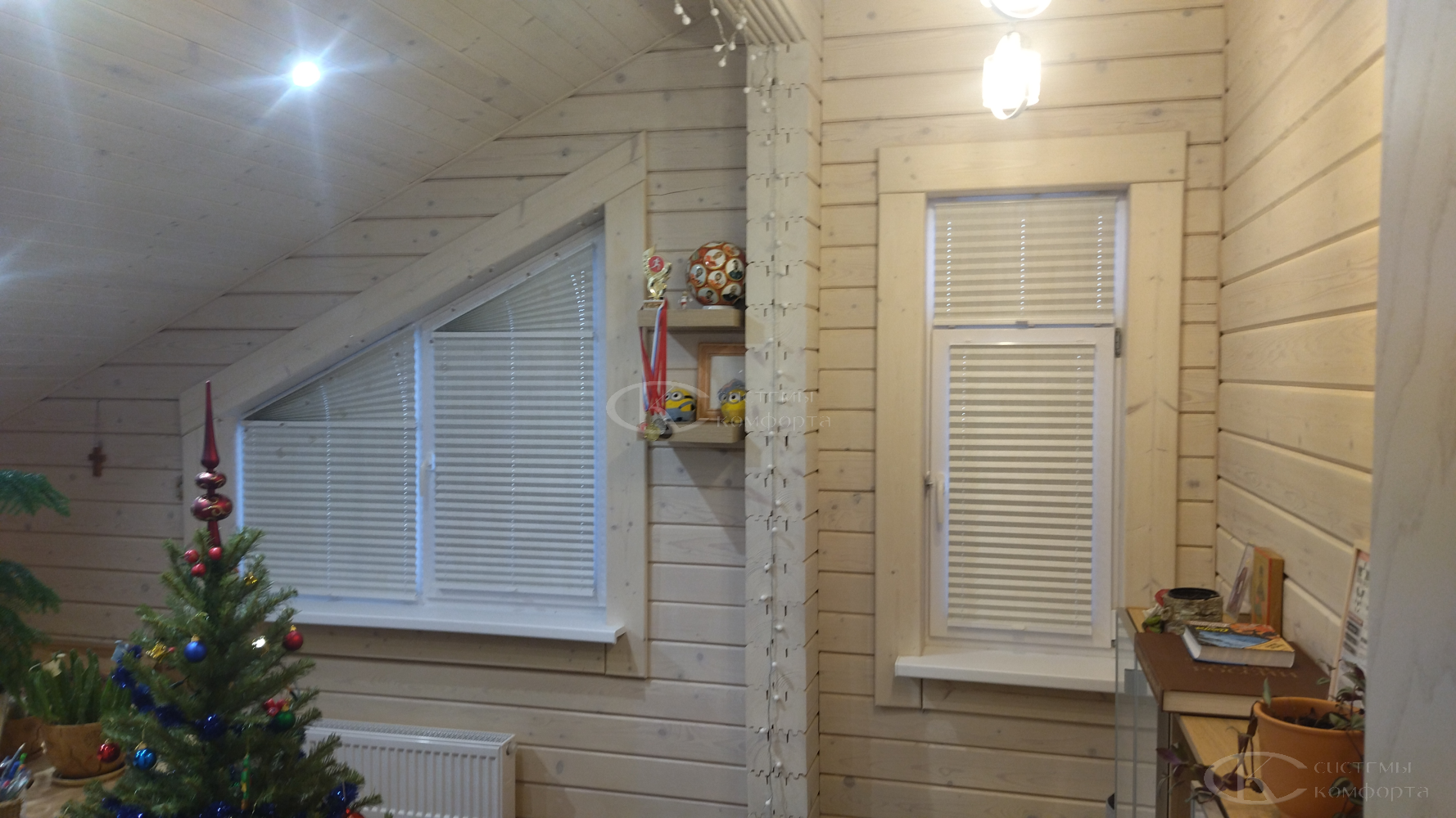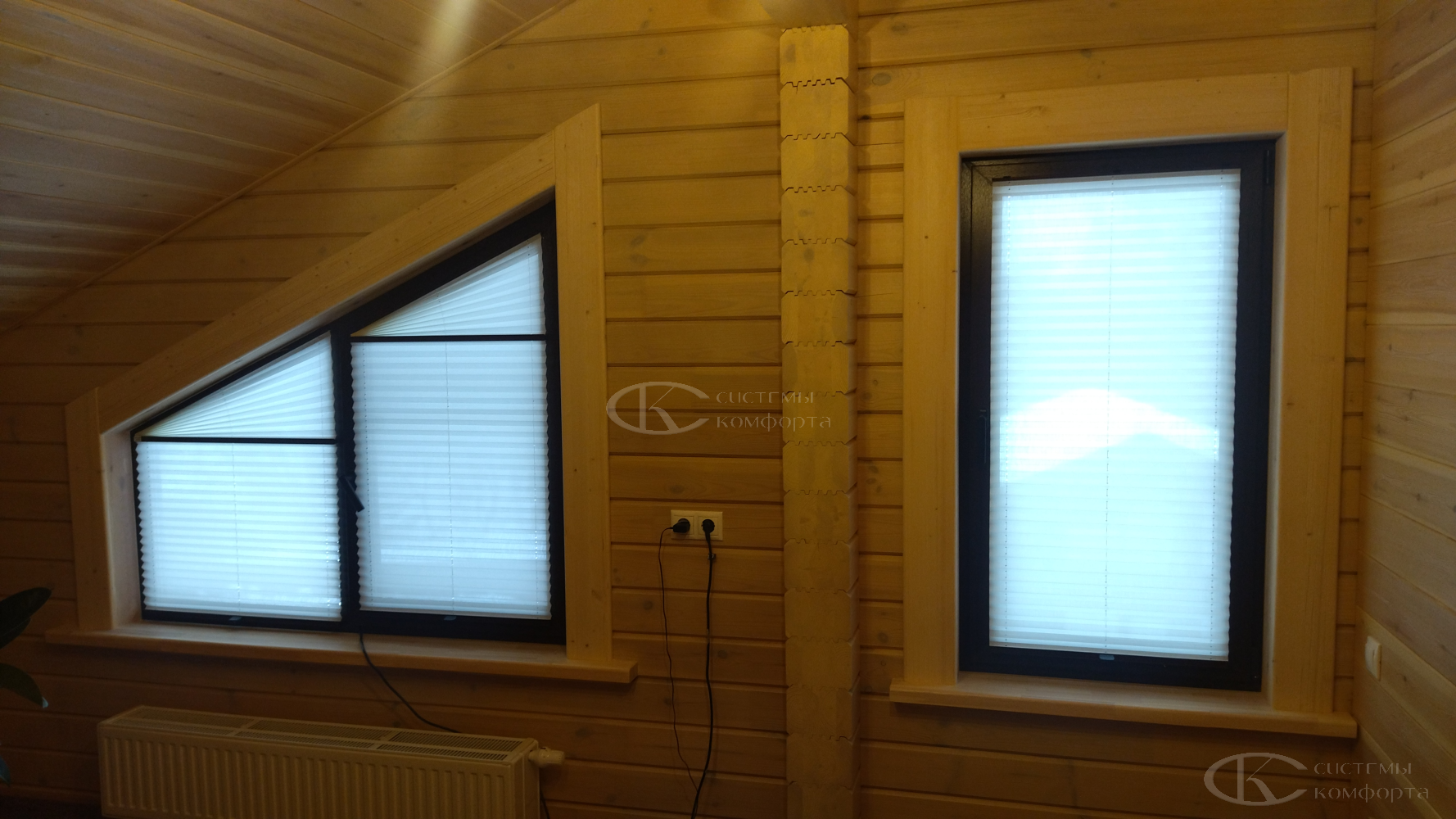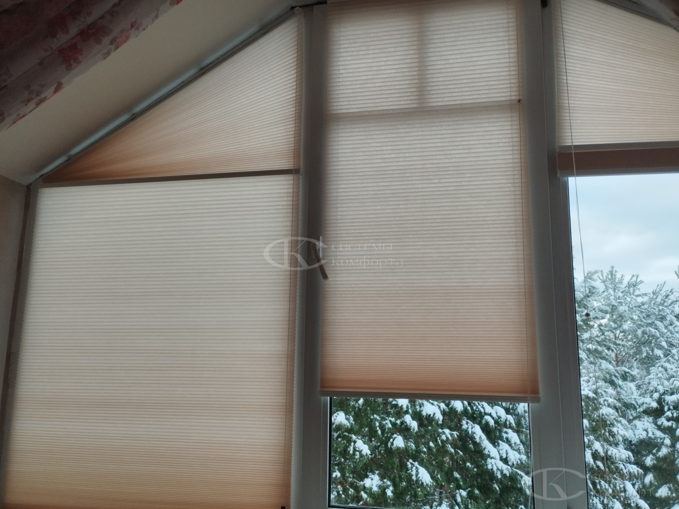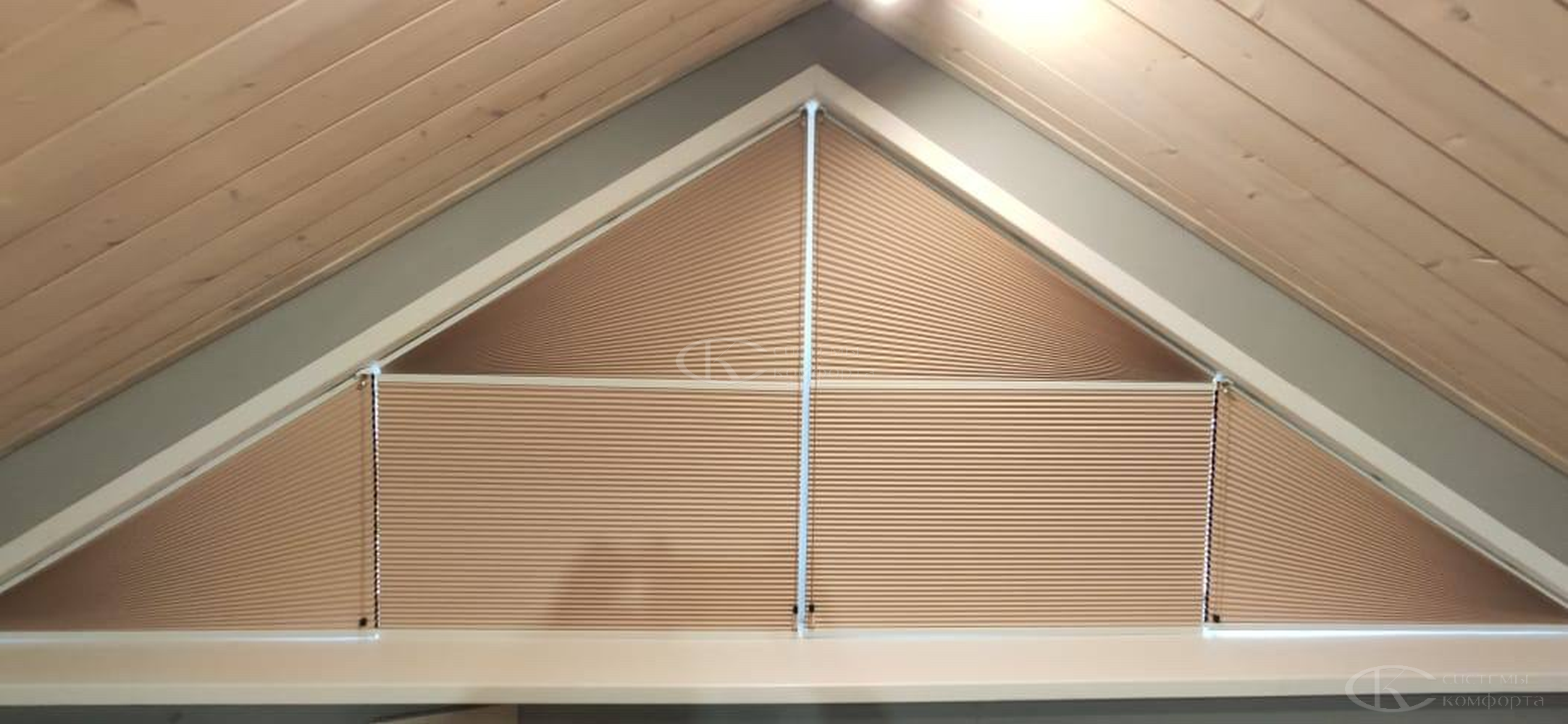 Их конструкция представляет собой ткань, собранную в равномерные, изящные складки-гармошки, способные изгибаться по заданной траектории. Именно эта особенность делает плиссе единственно верным решением для треугольных, арочных, трапециевидных или круглых окон, которые часто становятся архитектурной изюминкой загородного дома.